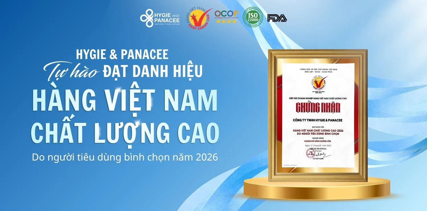 "Với mục đích bảo vệ và nâng cao sức khỏe con người, trà thảo dược Hygie and Panacee tự hào là thương hiệu tiên phong ở Việt Nam chuyên sản xuất dược trà hòa tan, khai thác và nâng cao giá trị dược liệu từ nông sản Việt."